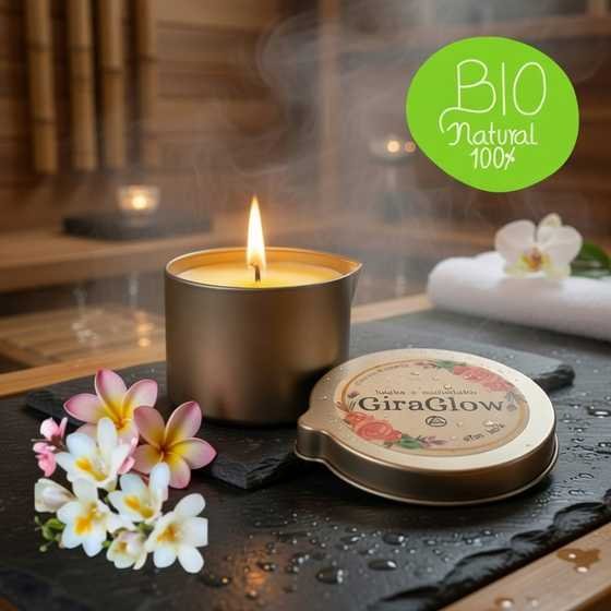 Al encenderla, su cera se transforma en un aceite tibio y aterciopelado, perfecto para masajes o para nutrir tu piel con una caricia cálida y reconfortante. Su fórmula 100% natural y vegana hidrata, suaviza y deja una sensación de frescura ligera, ideal para quienes buscan un ritual de cuidado lleno de intención y suavidad.